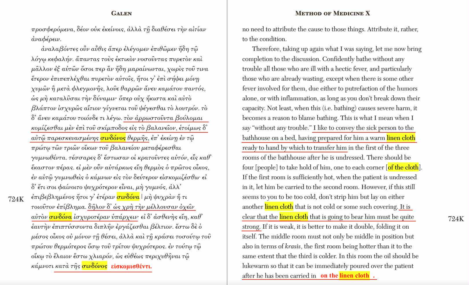 Still, so that you can understand how real experts know this, here below is a passage from the medical author Galen about what a sindôn is, from Method of Medicine 10.724 (this is a photo I took of my own shelf copy, with my fingers holding the page; but you can also look at a highlighted and underlined image of the same text):